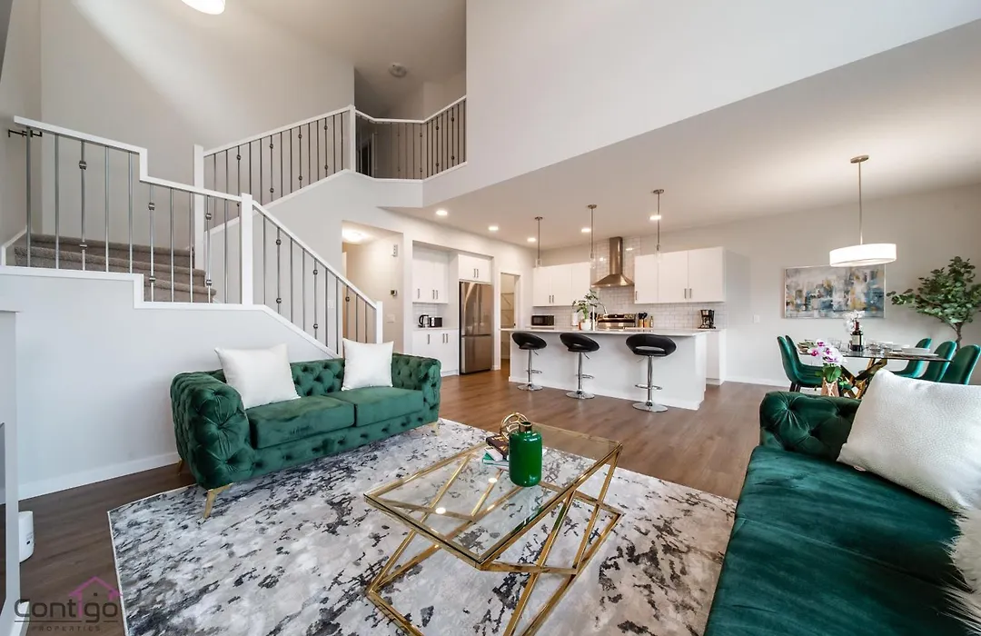 アクアパ-ク,パティオ と遊び場を提供しているOrchards Retreat, Pet Friendly, Sleeps 10, Near AirportヴィラはPure Wellness Studioから2.4キロメ-トル離れたSoutheast Edmonton地区にあります. この3のベッドル-ムのヴィラはヴィラで,パティオ,バルコニ- とソファのある客室を提供しています.